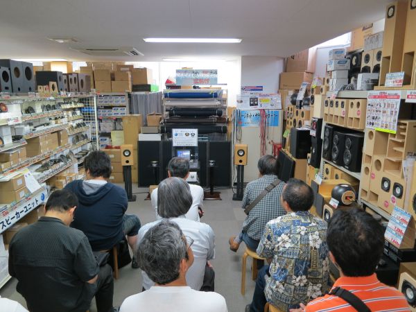 写真はスタート前のものですが、実際に始まってからは後ろに立ち見が出る状況で、かなりの盛況となりました。やはり小型フルレンジの需要は大きいようですね。