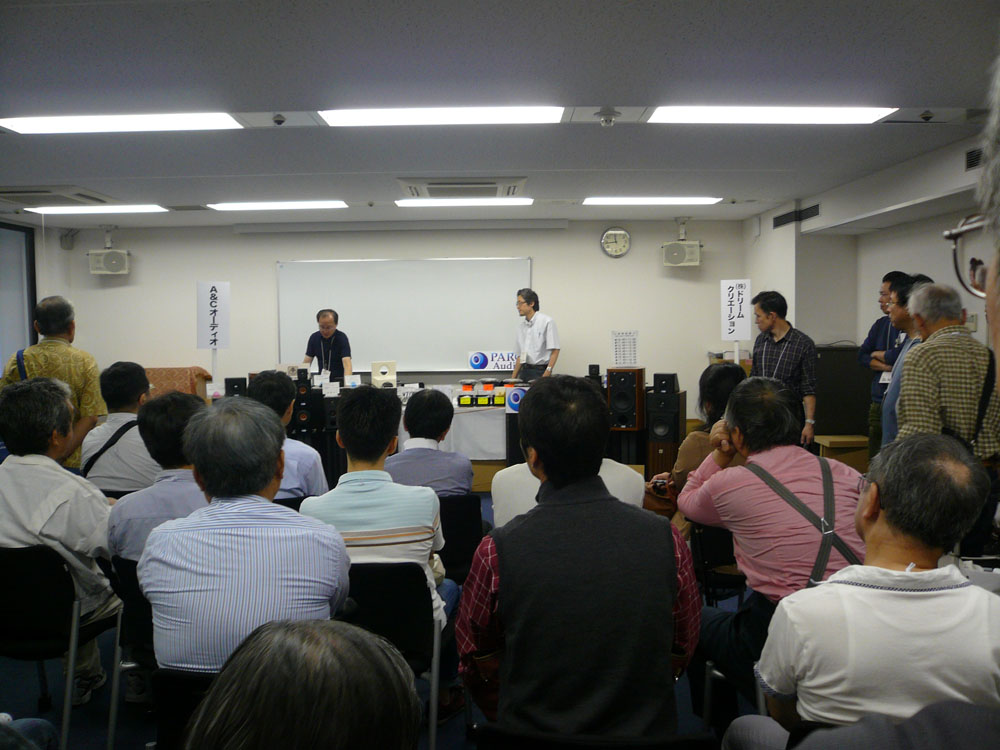 まぁとにかく忙しかったです。デモのモデルが多いことと、インターバルが40分(後半は1社が音出しをしなくなったので、36分)しかないので、デモ終了後にユニットの入替えをしたり、販売対応などをしているとあっという間に次のラウンドが始まるといった感じで、本当に疲れました。(^^;